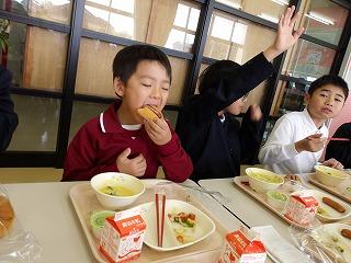 今日はパン給食でした。ホットドッグということで、自分で具材(野菜炒めとウインナー)をパンにはさんで食べました。皆美味しそうに食べていました。自分で具材をはさめるということが、とっても楽しいようでした。