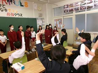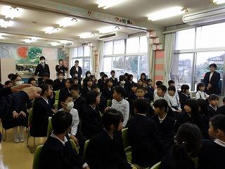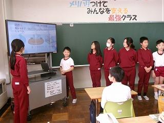 本日は沢山のニュースがあります。1年生が6年生に向けて、マット技を発表しました。とっても上手でした。4年生は5年生に社会科のクイズをしました。盛り上がっていました。保健委員会は風邪予防について発表しました。タイムリーな発表です。3年生は生き物観察会報告会、5・6年生はSDGs学習取組報告会に参加しました。学びの成果を立派に発表していました。もうすぐ12月。2学期も残りわずかですが、子供達は頑張っています。
