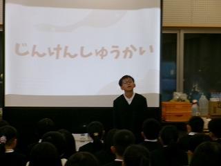 本日、人権集会がありました。明日から1週間は人権週間でもあります。子供達は皆、真剣な表情で話に聞きいっていました。これからも、周囲の人間を大切にする心をもって、互いの人権を尊重していってほしいと思います。
