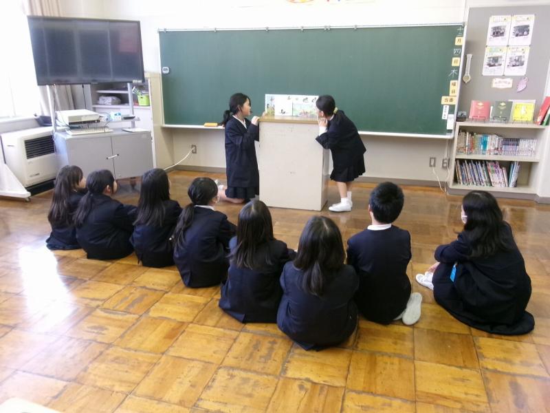 1年生が、国語で学んだたぬきの糸車について、2年生に発表しました。ハキハキと大きな声で元気に発表でき、2年生からも感想をもらうことが出来ました。2年生もきっと懐かしく発表を聞いていたことでしょう。