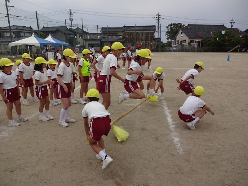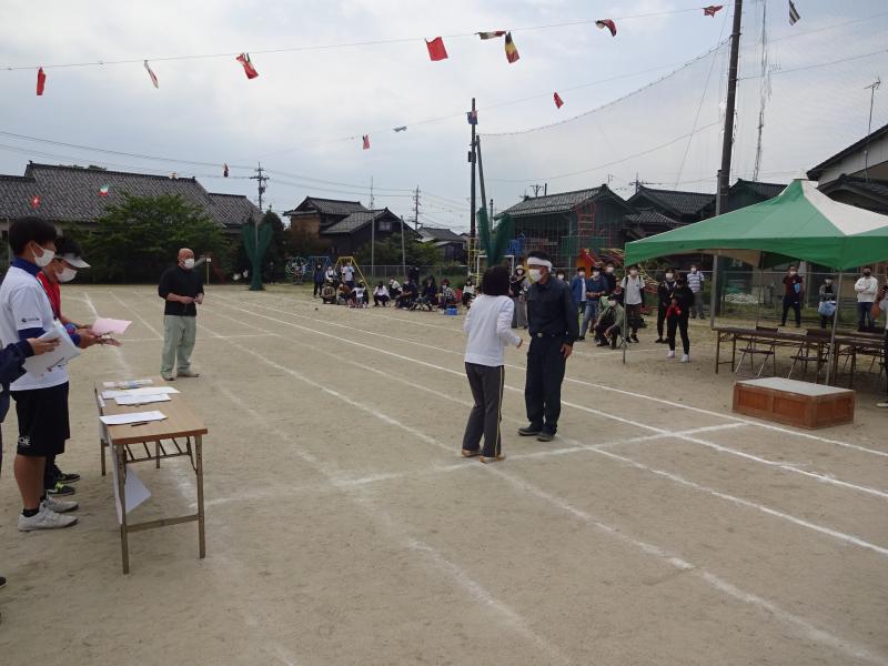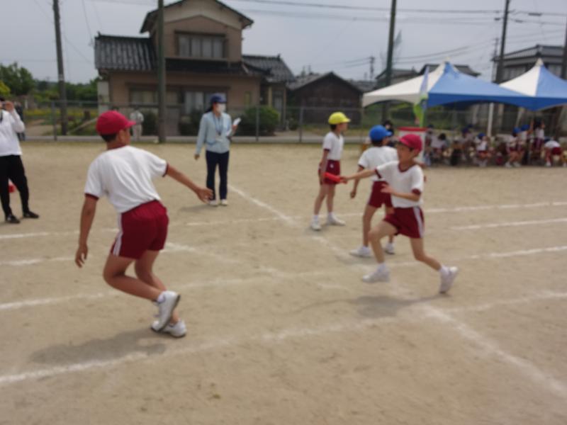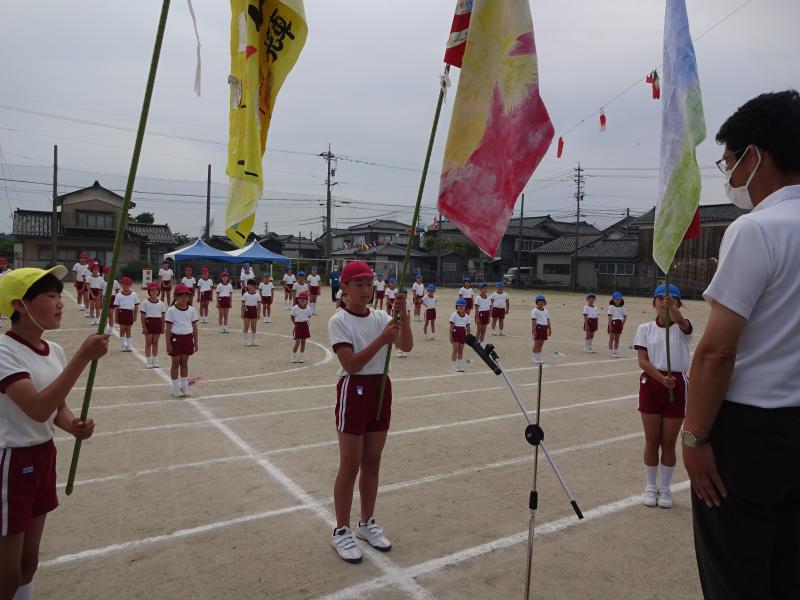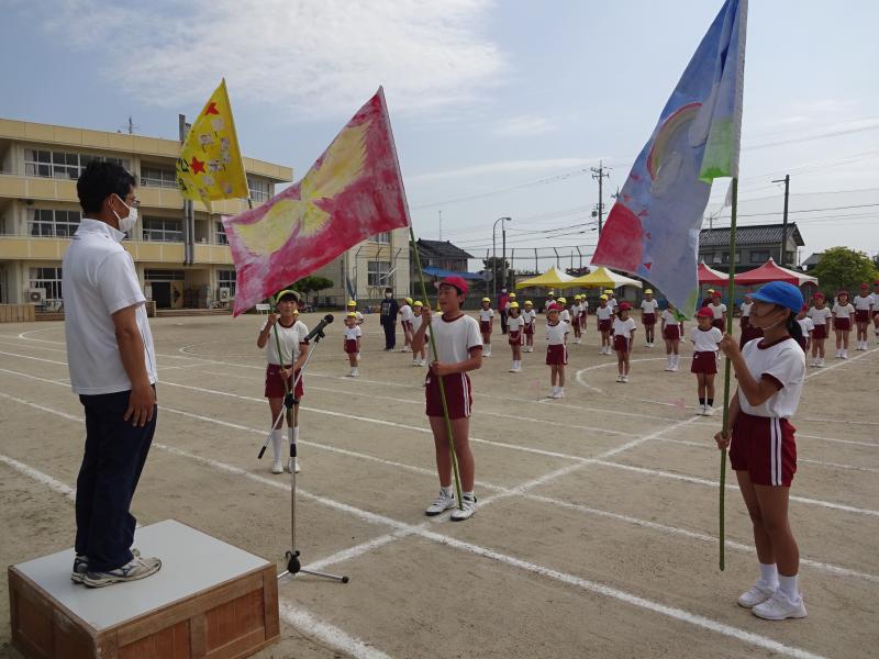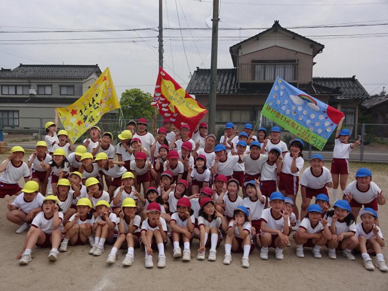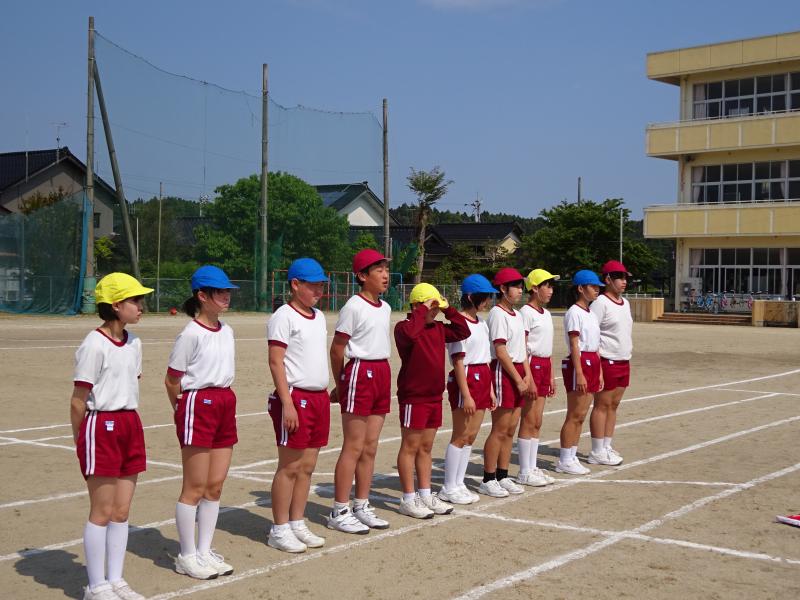 21日(土)、運動会を行いました。5月に入ってから6年生が中心となり、班や全体での練習を続けてきました。今年度のスローガンは「最後まで 心を一つに ワンチーム!」です。6年の新さんが考えてくれたものです。これを合言葉に、心を一つにしてがんばってきました。運動会当日は、天候にも恵まれ、子ども達は、6年生のめあてをしっかり聞いて、運動会を楽しんでいました。小学生になって2ヶ月も経っていない1年生も、最後の演技「ダンス」まで一所懸命がんばりました。全ての子ども達が練習の成果を発揮してくれました。その結果、今年度の優勝は1班で、2位は同点で2班と3班でした。最後に6年生と振り返りを行いました。みんなの充実した顔と、6年生のやりきったという清々しい笑顔で運動会を終えることができました。保護者の皆様、地域の皆様、ご声援ありがとうございました。また、保護者の皆様には、片付けのお手伝いもしていただきました。ありがとうございました。