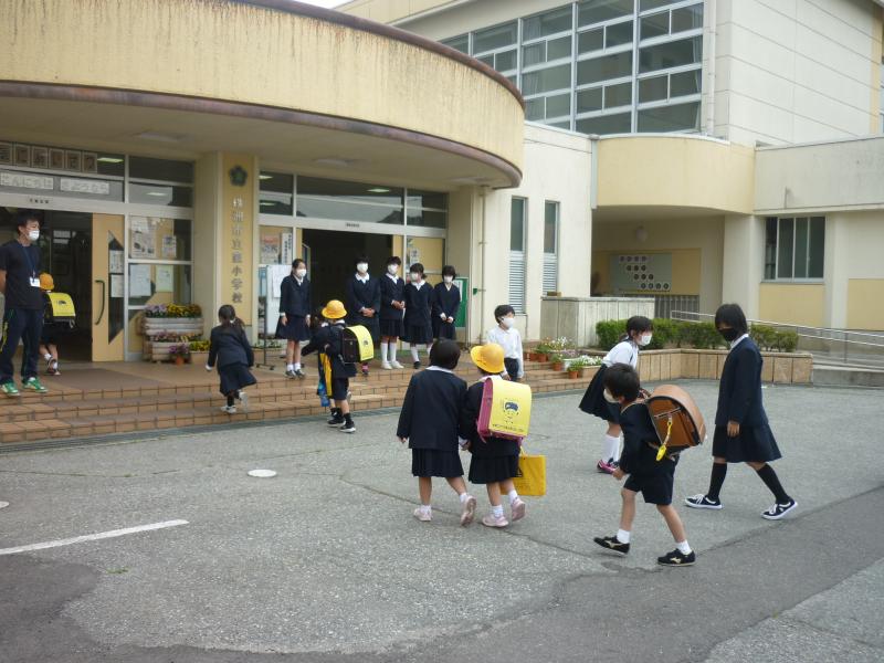 災害が起こった際の、児童引き渡し訓練を行いました。何も起こらないことを願っていますが、最近、地震が頻繁に起きています。この訓練を機会に、家でも非常時の対応を話し合ってください。