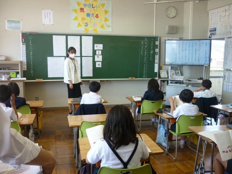 2日(木)に奥能登教育事務所、珠洲市教育委員会の皆様にお越しいただき、学校訪問が行われました。1年間に3回ある訪問の1回目です。午前中は、学校の取組について概要を説明した後、2~4限目は授業を見ていただきました。午後は、午前の研究授業をもとに研修を行いました。多くの指導助言をいただき、実りある一日となりました。