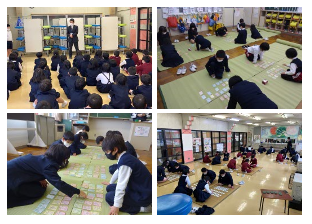 四つの会場にわかれ、全校で校内百人一首大会を行いました。