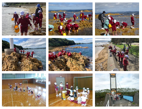 磯の生物観察(1・2年生)、魚釣り(3・4年生)、