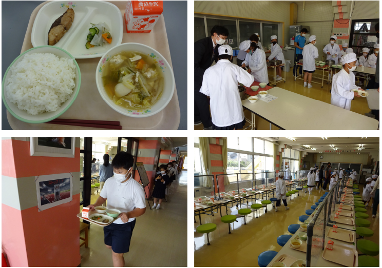 本日10/19は食育の日とのことで、献立は ご飯 牛乳 ぶりの照り焼き やたら漬け けんちん汁 でした。食育の日は、生きる基本「食」を健全にすることで、心身ともに健康的な人を増やしていこう!ということらしいです。おいしいご飯をしっかり食べましょう! 今日は準備のときの写真を撮りました。毎日よく動いています。いつもありがとう!
