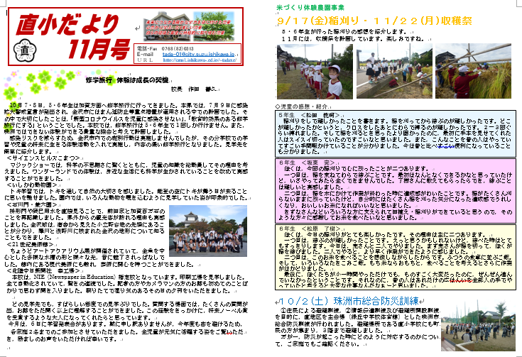 2021年10月27日 16時50分直小だより11月号をおたよりにアップしました。