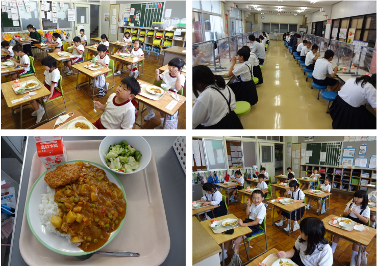 最近雨の影響か涼しいですね。暑すぎると食欲がわかないときもありますが、ちょうどいい気温でたくさん食べられます。さて、今日の給食はじゃがいもの日ということで、ごはん 牛乳 とりじゃが キャベツの酢みそ和えでした。「にくじゃが」の「とり」バージョンでとてもご飯に合うおいしい給食でした。児童も食べるスピードが早めでした。やっぱり好きな子が多いですね。
