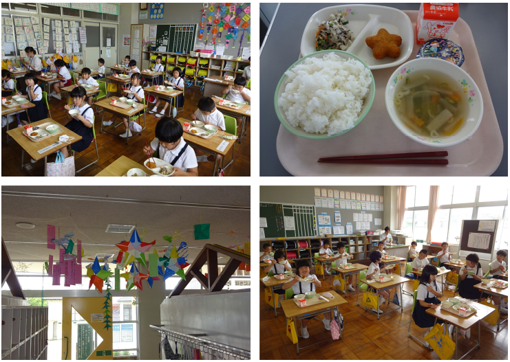 本日は七夕の日ということで、 ごはん 牛乳 星のコロッケ ひじきのサラダ 七夕すまし汁 七夕ゼリー というメニューでした。 星のコロッケはもちろん、七夕ゼリーも星形で、すまし汁のなかにも星形のトッポギが入っていました。また、すまし汁の大根等は短冊切りになっていてこだわりが感じられる素晴らしい給食でした。 とてもおいしかったです。ごちそうさまでした。