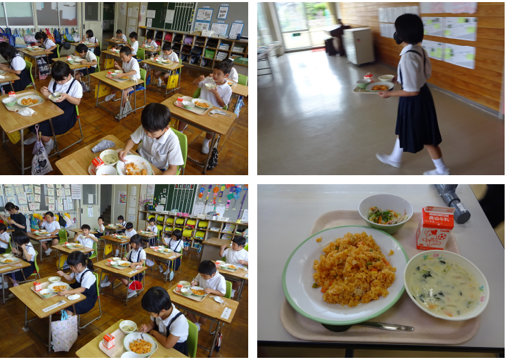 本日の献立は、 チキンライス 牛乳 いんげんのグリーンサラダ ニョッキのクリームスープ でした。イタリアの日ということで、ニョッキがはいっていました。ニョッキは団子状のパスタのようなもので、ジャガイモと小麦粉を組み合わせて作るものだそうです。 下級生に、「今日はイタリアの日給食ですが、どれがイタリアの食べ物でしょうか」と聞いてみると半分以上がチキンライスと答えていました。目立ちますもんね。 ↘1,2年生には高学年の児童が給食を運んでいます。いつもありがとう!