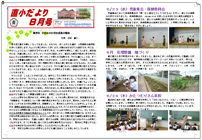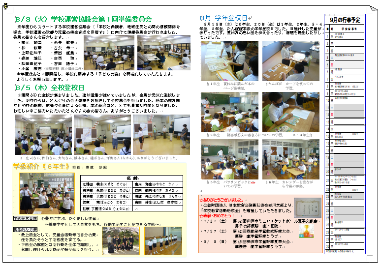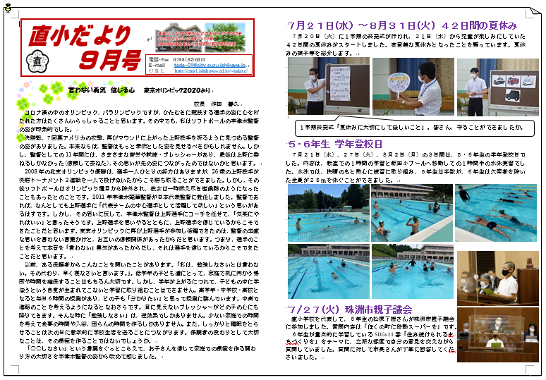 2021年8月26日 12時52分直小だより9月号をおたよりにアップしました。