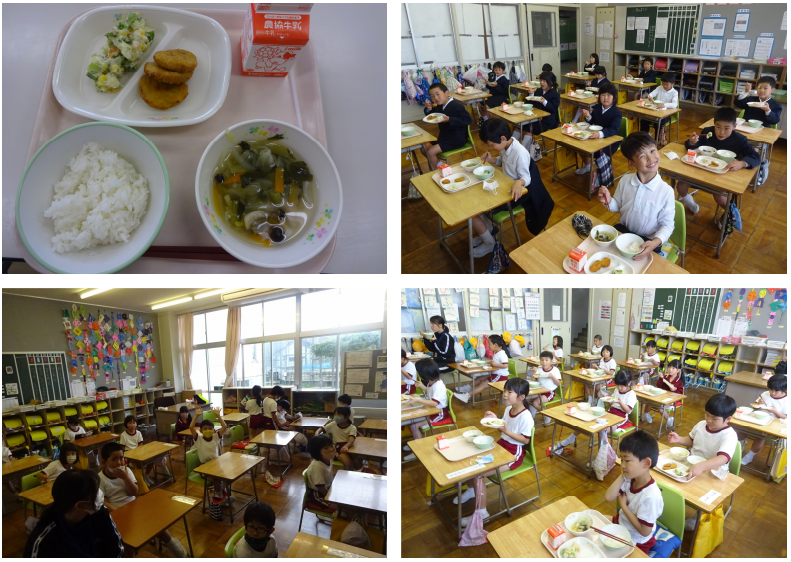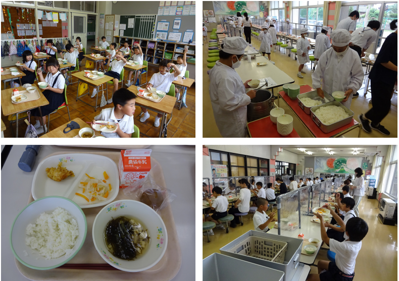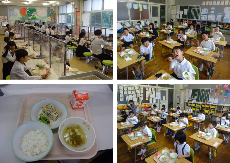 左上の写真は3年生の量の給食です。残さず食べることができています。