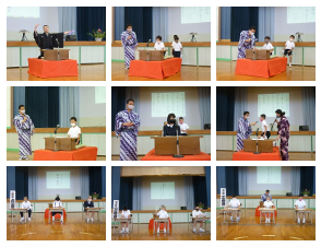 本日、直小の体育館において、講談を体験