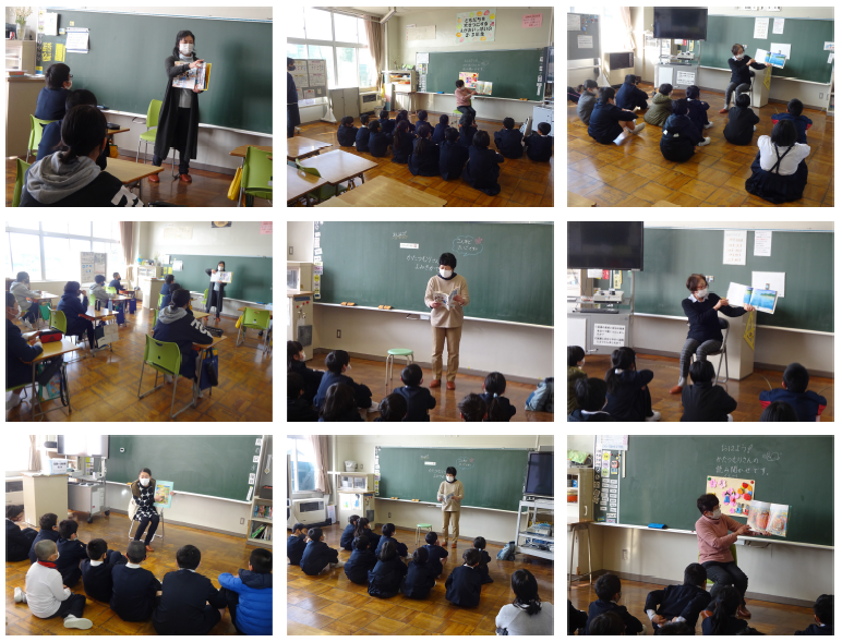 11日の朝は、かたつむりさんの読み聞かせがありました。今年度最後の来校です。今回は5人の方が来て下さいました。