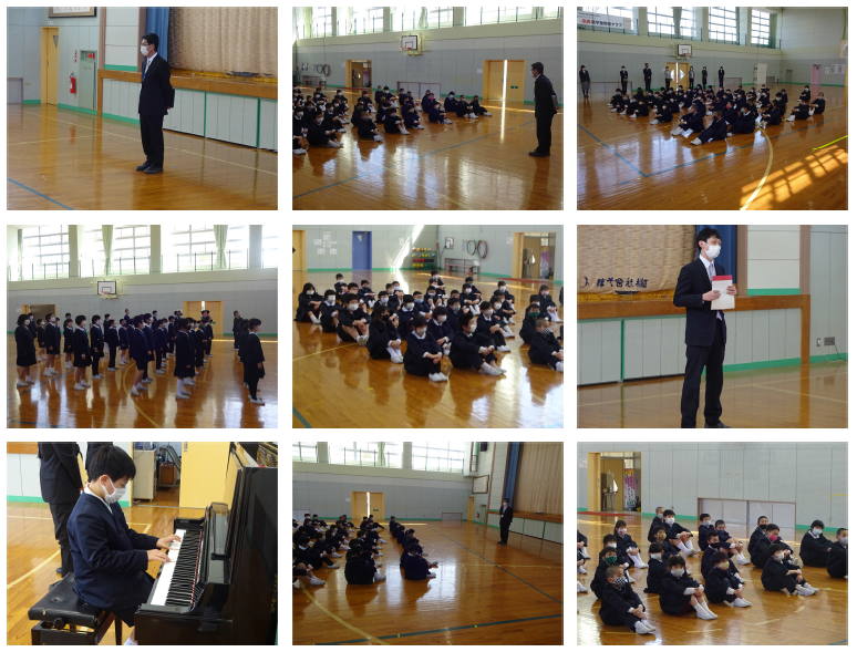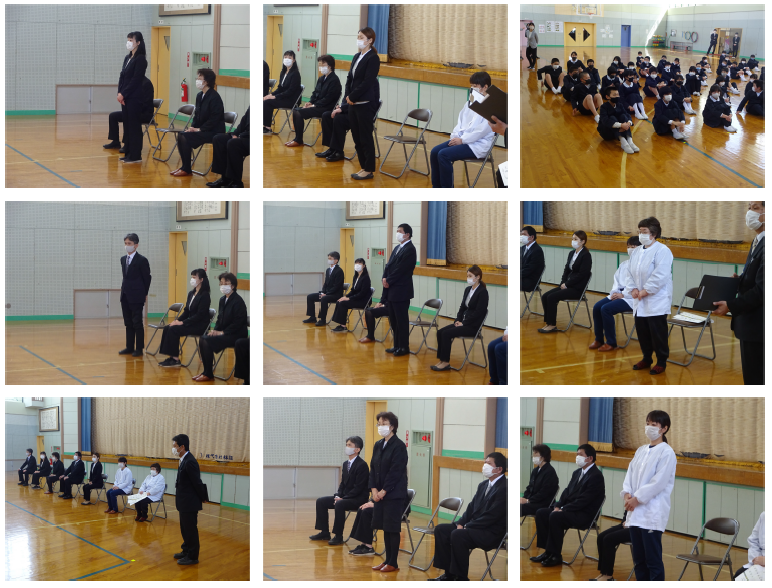 24日、いろいろあった令和2年度も修了式を迎えました。今年度は192日の授業日となり、例年より10日ほど少なくなりましたが、必要な授業時数は確保でき、その学年で学ぶべき内容も終えることができました。