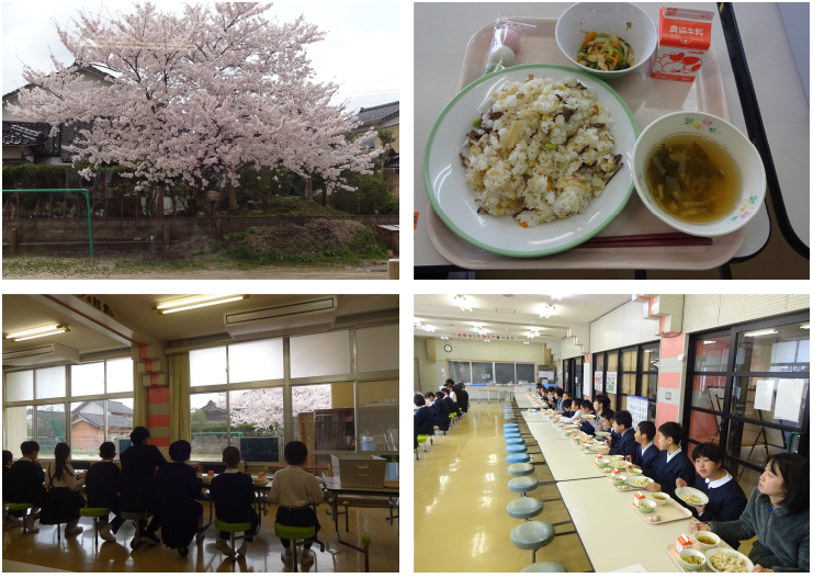 3~6年生は正面の窓をみてお花見をしながらの給食となりました。とてもおいしかったです。