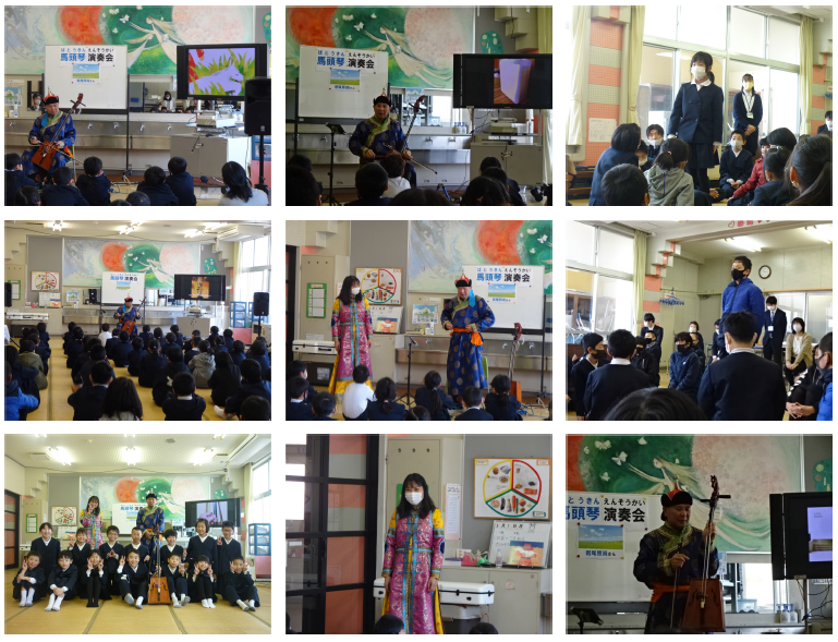 どの児童も馬頭琴の音色に魅せられたようで、静かに聞き入る姿が見られました。最後は馬頭琴についての質問コーナーがあり、児童はこの楽器について、弦は何でできているのか、いくらくらいするのかなどたくさん質問する姿がありました。