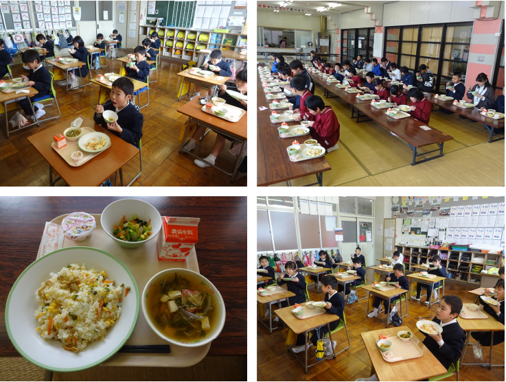 本日の給食はひなまつり給食でした。献立はちらし寿司、牛乳、小松菜和え、すまし汁、ひなまつりゼリーで色とりどりの給食となりました。もうひなまつりの時期なんだなと思いながら食べました。子供たちはひなまつりゼリーを大事そうに食べていました。ごちそうさまでした。