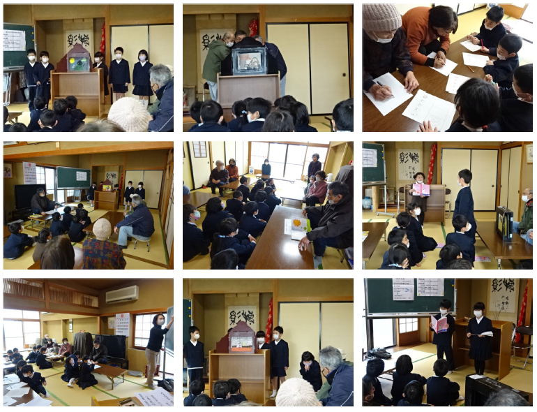 3日(水)の3・4限目に、公民館で紙芝居交流会を行いました。1年生手作りの紙芝居は長生会の皆さんに大盛況で、「じいちゃんらが1年生のとき、こんな上手く絵描けんかったわ。」「聞きやすい速さで、声も大きくて上手やったわ。」と、たくさん褒めていただき、ニコニコの12人でした。