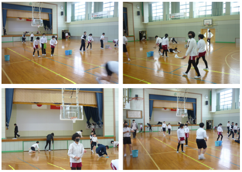 5日の6限目、4~6年生で体育館のワックスがけ作業を行いました。18日に行われる卒業証書授与式に向けた練習が、来週8日から行われるのに合わせての作業です。家から持ってきた新しいぞうきんを使って、4~6年生は体育館の端から端までの水ぶき・乾ぶきを何度も繰り返して行いました。マスクをしながらだったので、息を切らしながら最後までがんばる姿に、6年生を綺麗な体育館で送ってあげようとする在校生の気持ちが伝わってくる時間でもありました。