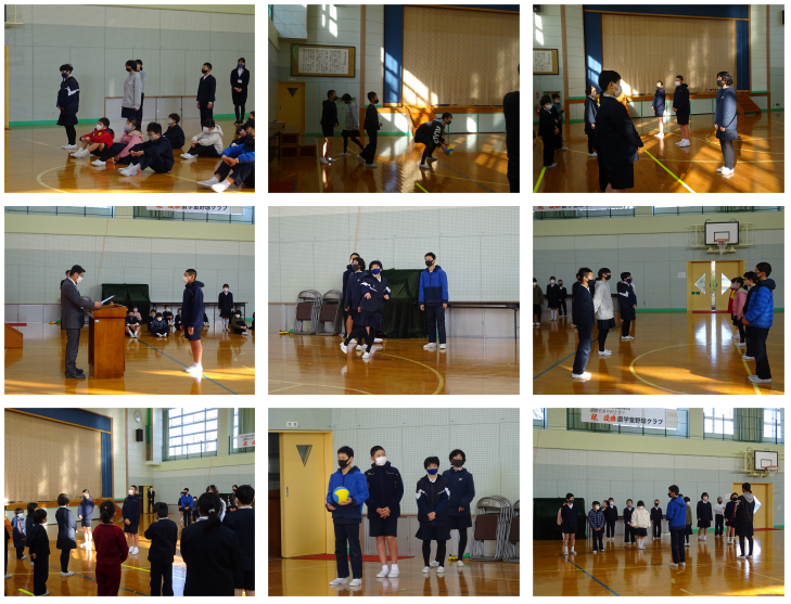 表彰の後、6年生がシャトルボールの技を披露してくれました。自分たちではなかなかできない6年生のプレーを、下級生は感心して見る姿がありました。