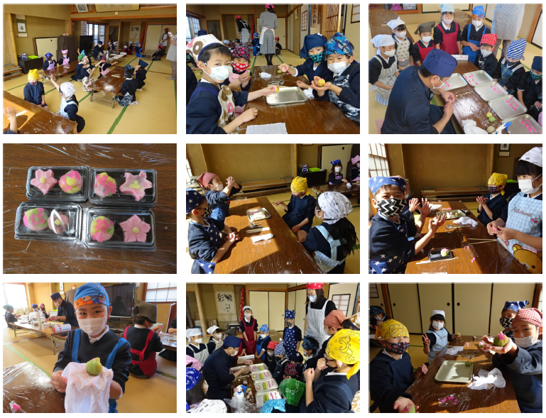 9日の3~4限目に、1・2年生は公民館で和菓子づくり体験を行いました。おきな軒の瀬戸さんが丁寧に教えてくれたので、難しいところもありましたが、低学年の子どもたちでも上手につくることができました。今回は、2種類の練りきりを作って持ち帰りました。味はもちろん、目でも楽しめるのが和菓子の良さです。今回を期に、和菓子をはじめとした日本の良さにも興味を持ってくれたらいいなと思います。