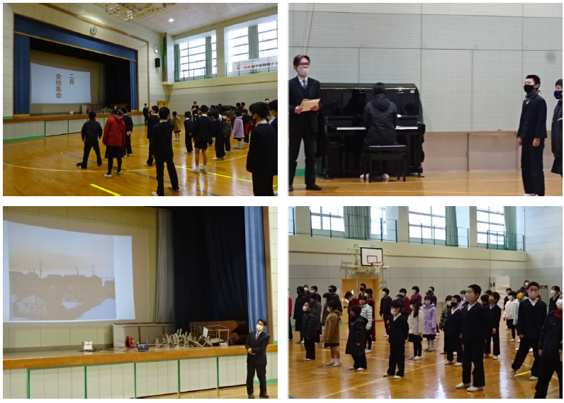 2021年2月8日 09時05分毎週木曜日、ALTマッキー・エイデン先生が来校します。本来なら5・6年外国語の授業に参加されますが、この日は5・6年生がスキーでいなかったため、4年生の外国語活動に参加していただきました。4年生はエイデン先生手作りの動画や生演奏に合わせて、楽しんで英語を学ぶ姿が見られました。エイデン先生ありがとうございました。