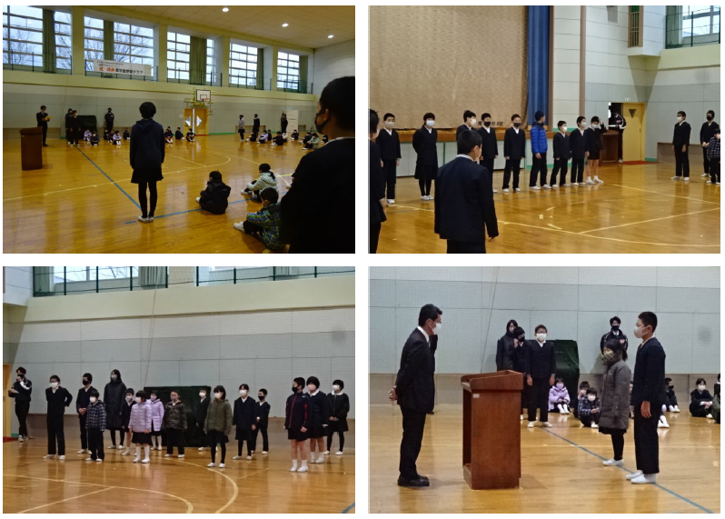 表彰されたみなさん、おめでとうございます。その後、5年生の学年発表でした。歌「北風小僧の貫太郎」を披露しました。最後に全校児童で、北風に負けない気持ちを声に込めて合唱しました。明日からは、卒業式に向けて、歌「変わらないもの」の練習が始まります。3月18日の卒業式では、素敵な歌が聞けるといいなと思います。