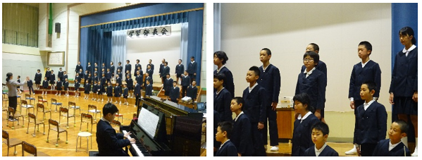 24日の学習発表会に向け、16日から毎朝全校での合唱練習に取り組んでいます。本校のよさの一つが児童の歌声です。本校伝統の合唱を見てもらえるよう、一人ひとりがよくがんばっています。伴奏者の5年坂東さんも、ピアノを弾くたびに上手くなっていく様子も感じられます。24日を楽しみにしていて下さい。