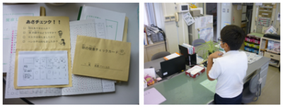 →・朝の健康チェックカードの確認・持ち物チェック(マスク・ハンカチ)を行っています。