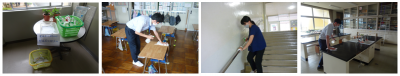 ・常に教室の窓を開け、児童同士の机の間隔を広くとります。