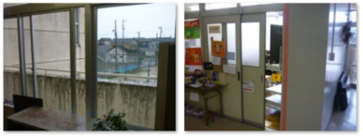 →・教室の扉と窓を対角に 10~20cm 開けて、常時換気します。