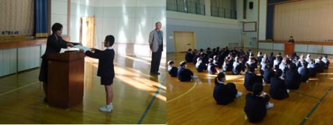 校歌・表彰のあと、校長先生が2つのお話をしました。