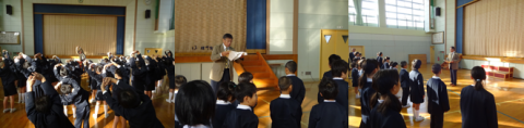 13日朝、全校朝会を行いました。