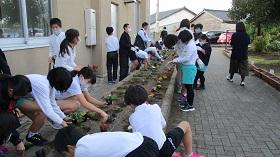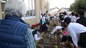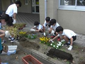 今週は、フラワーアドバイザーのみなさんのご指導で、玄関前の花壇が冬の装いとなりました。子どもたちも参加して、夏の花を掘り起こし、耕して冬の花々をきれいに植えました。季節は冬を迎えますが、色とりどりの花が並ぶと、とても華やかで寒さを忘れるようでした。アドバイザーの皆様、いつもありがとうございます。