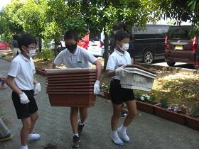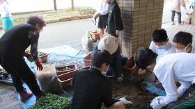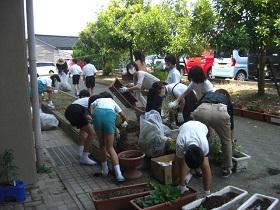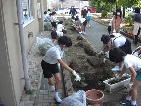 今日の昼休み、環境委員会を中心に花壇の植え替え準備を行いました。春の草花を抜き、耕しました。今度は夏から秋の草花に模様替えをします。フラワーアドバイザーのみなさん、いつもありがとうございます。