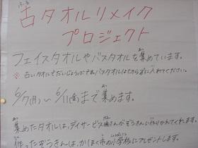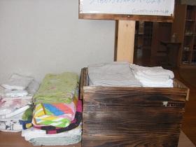 先週取り組んだ古タオル回収にご協力をいただきありがとうございました。おかげで、大きな段ボール箱4個分以上も集まりました。これらを先日、高松中の生徒が受取りに来ました。その上で、デイケアセンターに寄付をしたそうです。その模様は、北國新聞に掲載されています。