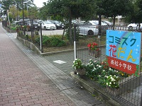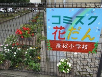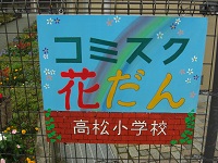 コミュニティ・スクールの一環で整備されている玄関前の花壇に、新しく看板ができました。名前は「コミスク花壇」です。
