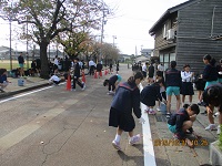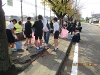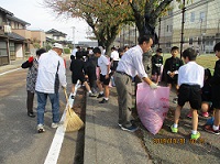 昨日のお昼下がり、流川町老人会のご厚意で学校前の桜並木通りの落ち葉掃除をしていただきました。児童、職員も80名余りが自主参加し、みんなで落ち葉を集めました。