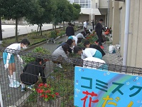 11月6日のお昼休みに、地域のボランティアさんと環境委員会の児童、学校職員と有志児童で、コミスク花壇の整備をしました。秋もすっかり深まり、肥料を入れて、来年の春に向けて冬支度です。本校児童も短時間に集中してよく作業をしてくれるので感心します。