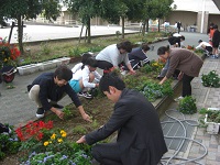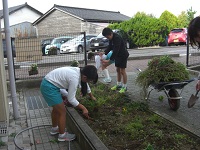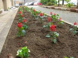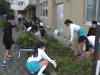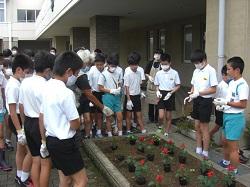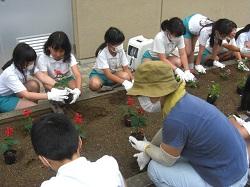 今日は、梅雨の合間を縫って、夏の草花を植えました。地域のボランティアさんを招いて苗の配置を考え、児童が昼休みに一緒に植え付けを行いました。ついでに落ち葉拾いもして校舎前がすっきりしました。最後に児童がボランティアのみなさんにお礼を言いました。ありがとうございました。