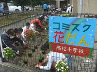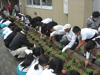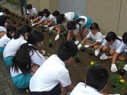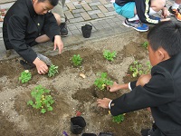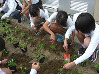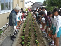 今日は、前回の整備に続いてパンジーなどの苗植えを行いました。地域のみなさんのご指導のもと、児童が参加して植え付け作業を行いました。