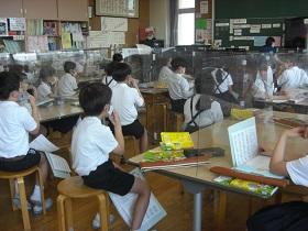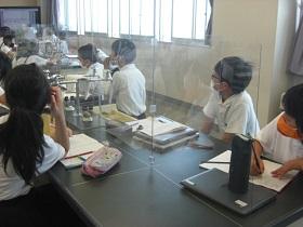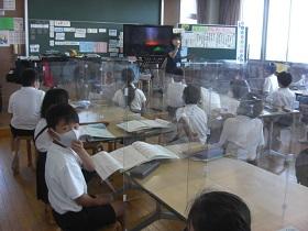 楽器の演奏や合唱など音楽の活動には、感染リスクのあるものもあります。また理科の実験などでも顔と顔を近づける場合があるので、今はアクリル板で前と隣を区切るようにしています。少々不自由ですが、何とかがんばっています。