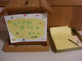 保健委員会が、みんなのなやみを和らげられればと、保健室前に「おなやみそうだんポスト」を設置しています。迷っていることから辛いことまで、おなやみがある場合は、保健委員、教職員やスクールカウンセラーが対応しますので、安心して相談してください。食べ物の好き嫌いのことなど、みんなにあてはまるものは、紹介したいと思います。(名前は出しません)