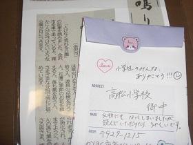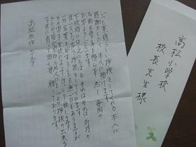 先日お電話をいただいた南町の方が学校を訪れ、お手紙をいただきました。内容は次の通りです。