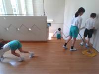 今日の給食は,子ども達が大好きなカレーでした。どの教室でもおいしそうに給食を食べる姿が見られました。給食後,昼休みに2年生から6年生までのなかよしグループの顔合わせ会がありました。自己紹介をして,今日から新しい清掃場所での清掃をスタートしました。6年生がリーダーとなり,グループで協力して,それぞれの掃除場所をきれいにしようとがんばっていました。