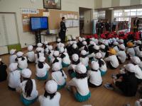 警察の方からは動画を交えながら、横断歩道を渡るときなどは「止まる・見る・待つ」の3つが大切だと