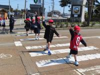 いうことを教えていただきました。お話を聞いた後は、学校の周りを実際に歩きながら、交通ルールを確かめました。