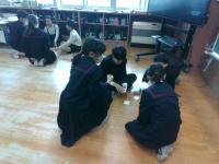なかよしタイムのリハーサルを行いました。自分たちで進行の6年生役、楽しむ下級生役に分かれ、練習していました。時間や遊びの内容や取り組み方、下級生が楽しめるよう工夫したら良いことなど自分たちでアドバイスしあっていました。当日に向けて遊び道具をよりよくしたい、音楽を流したい、仮の名札を作りたいなどさらなる工夫を考えられていたのが、さすが6年生でした。