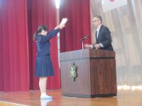 学校集会の中で,前期の委員長・学級代表の任命式があり,各委員長が前期にがんばりたいことを力強く全校に呼びかけました。